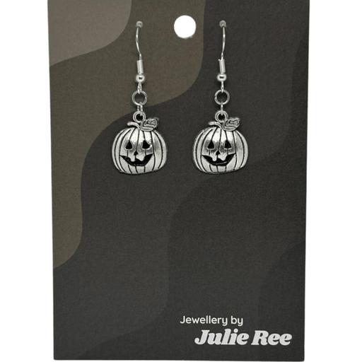 Get into the spooky spirit with these antique-effect jack-o'-lantern earrings! Featuring a cheeky carved pumpkin design in silver-tone zinc alloy, ...