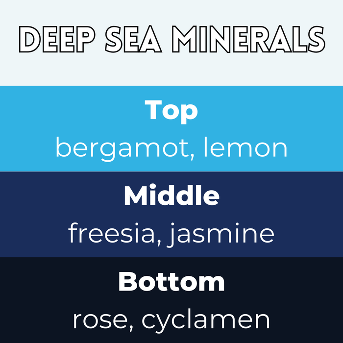 Deep Sea Minerals is a refreshing aquatic wax melt that captures the cool clarity of the ocean. Bright citrus notes of bergamot, lemon, lime, and mandarin open the scent, followed by a soft floral heart of freesia, rose, and jasmine. A wave of marine freshness flows through, anchored by a base of musk, amber, cedar, patchouli, and moss. Clean, revitalising, and effortlessly cool.
