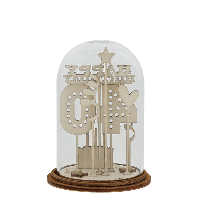 Celebrate the fabulous forties with this delightful Happy 40th Birthday Dome Keepsake. Featuring a bold "40" in marquee-style numbers, accented by a festive "Happy Birthday" banner and a miniature cake with candles, this keepsake captures the excitement of reaching this milestone. Encased in a clear glass dome with a wooden base, this piece is an ideal decorative gift for someone turning 40, adding a touch of celebration and making the occasion truly memorable.