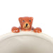 Peek-a-boo design: a 3-D sleepy bear clings lazily over the rim—instant smile material.